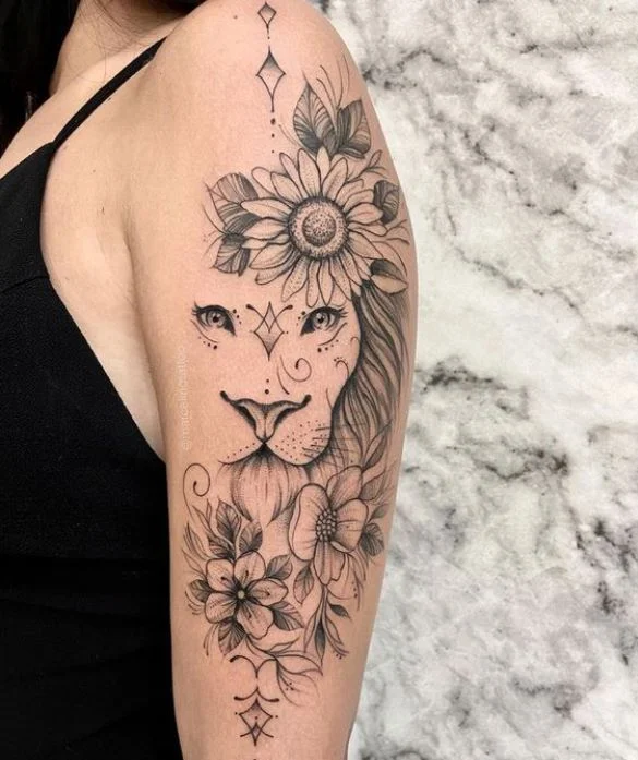La beauté féminine alliée au courage avec ce lion fait de fleurs et d’arabesque.